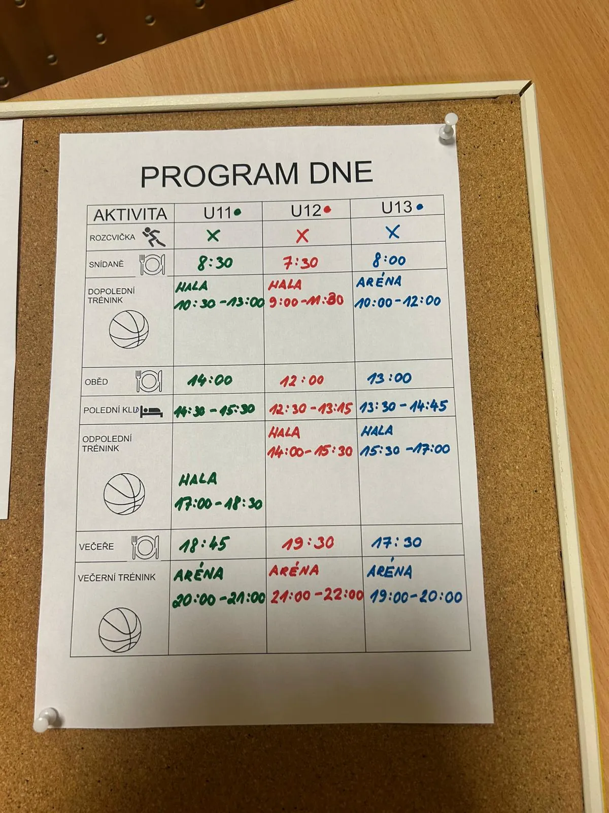 - 2x denně hala každá skupina – týmová hra, protiútoky, hra jedna na jedna, příhry..