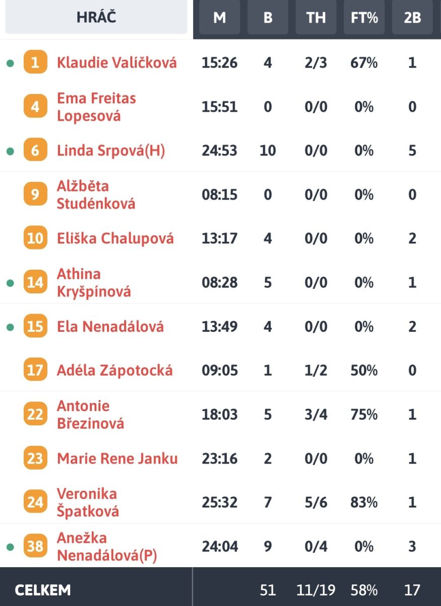 Jediný víkendový zápas jsme hráli na půdě soupeře, který se opírá o střleckou potenci Terezy Poživilové a ani tentokrát tomu nebylo jinak. Nicméně v prvním poločase jsme domácí možná trochu zaskočili a vypracovali si 11 bodové vedení. Domácí však do poločasu dokázali stáhnout a druhý poločas byl vyrovnaný až do konce. Byť jsme po drtivou většinu zápasu vedli, tak jsme odjeli s jednobodovou porážkou.