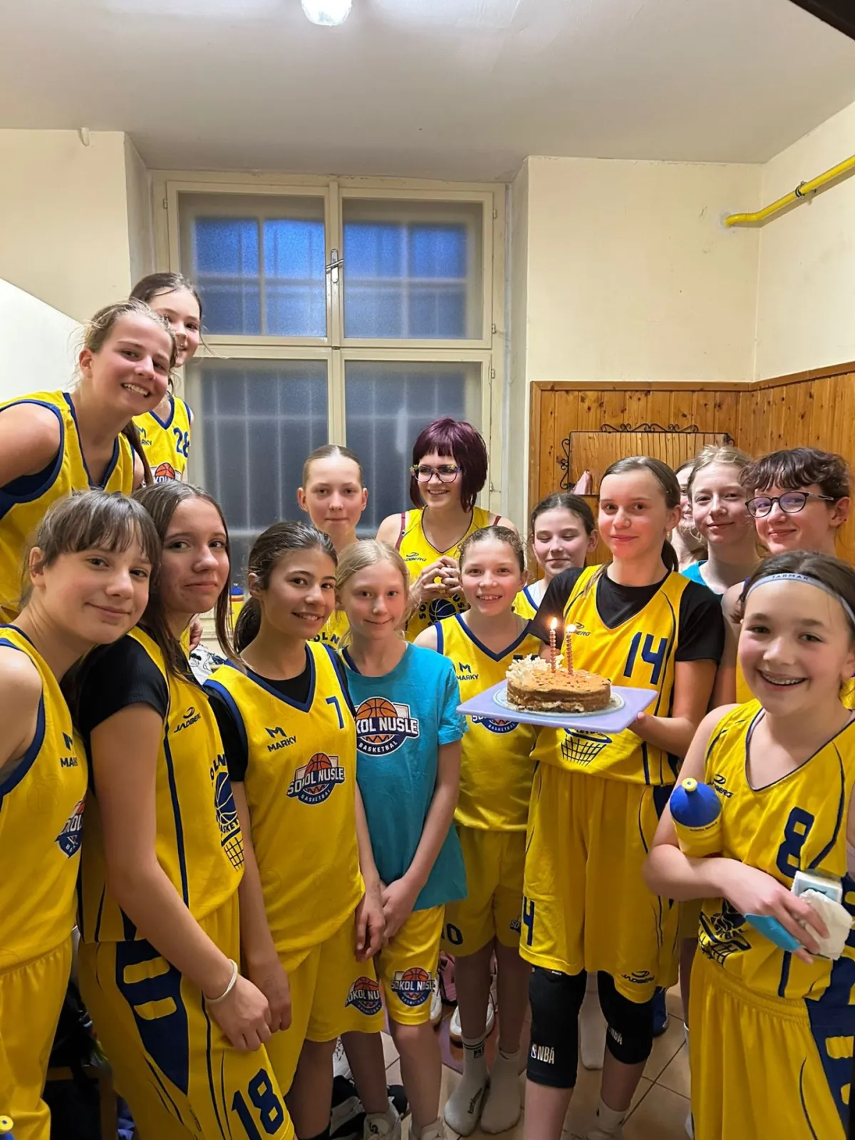 A protože basketbal není pouze o koších a výhrách, ale i o skvelém kolektivu, čekalo na naší trenérku Hanku překvapení v šatně k narozeninám. Hani, všechno nejlepší!