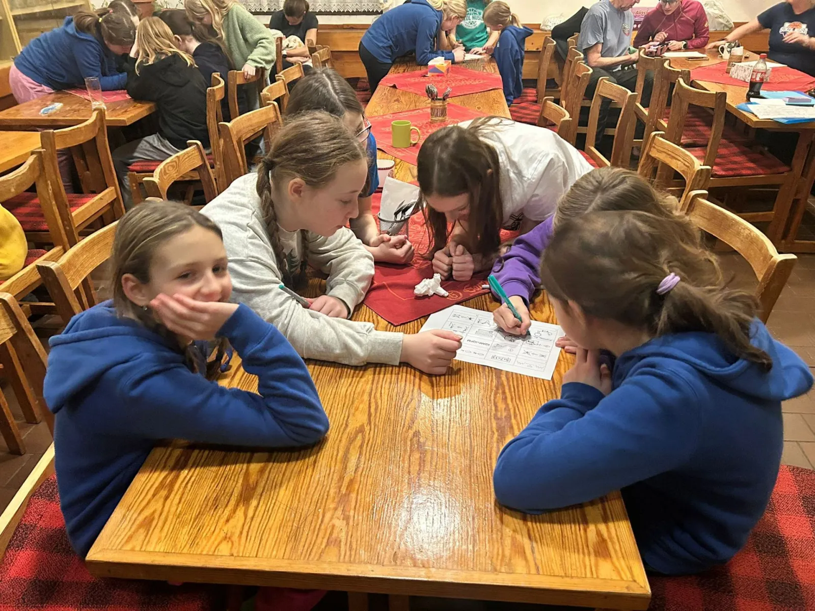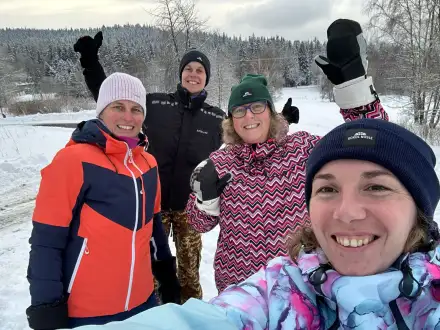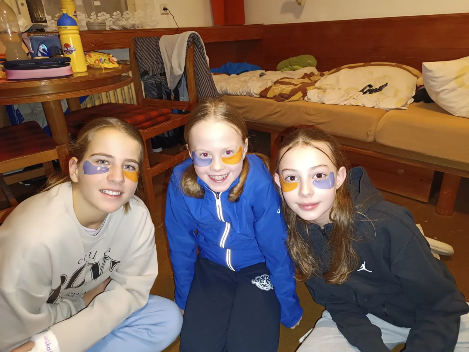 Basket je vášeň, tým je náš svět, Sok-holky z Nuslí raz dva vpřed, basket pospolu drží nás, na hory po roce razíme zas! Heslo našeho zimního soustředění, refrén písniček